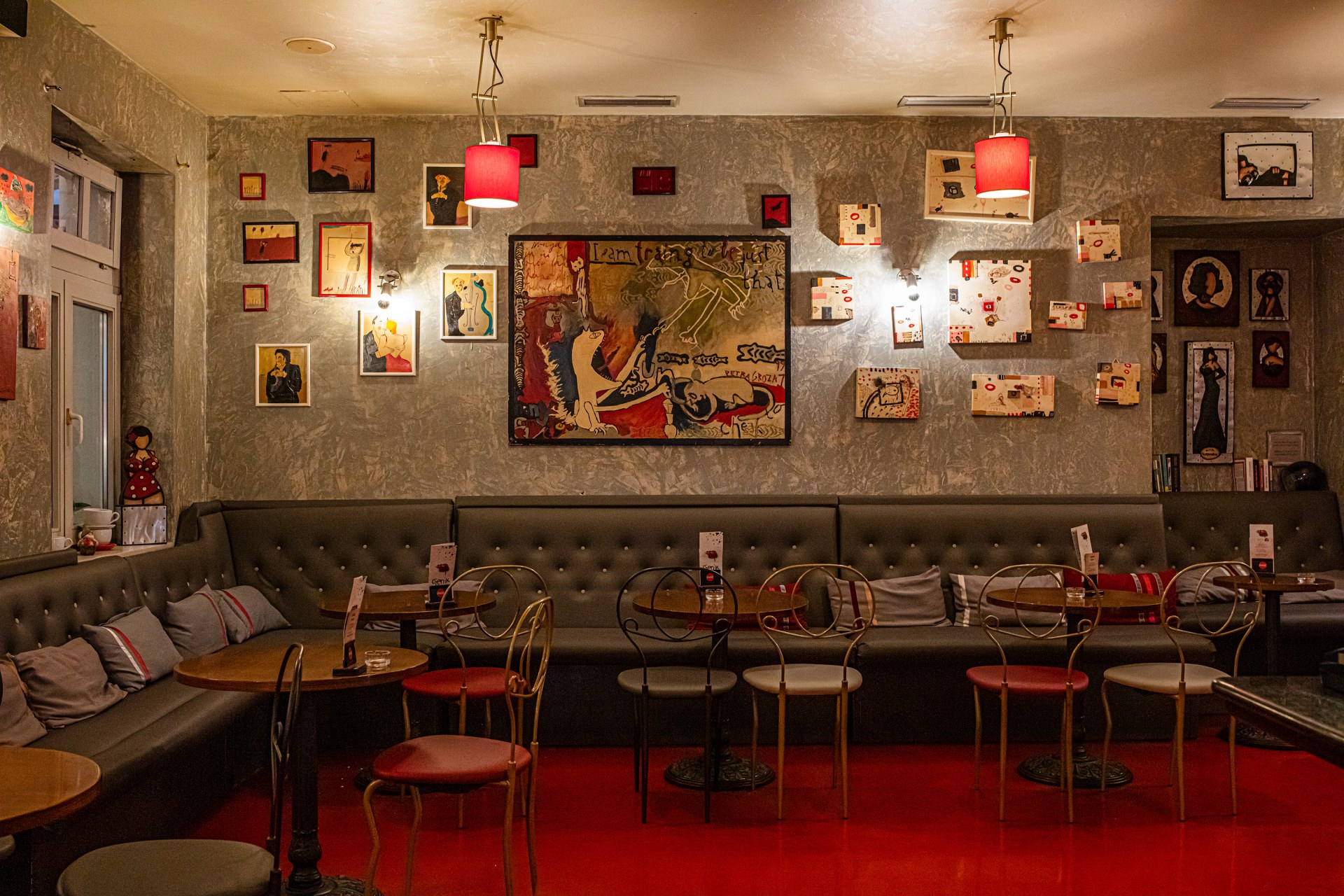 Uz prijateljsko ozračje te vrhunsku kavu, Boja privlači goste svojim predivnim i originalnim interijerom. S mladenačkom kombinacijom crvene i sive te s mnoštvom slika već afirmiranih mladih hrvatskih umjetnica, Boja kao da je ujedno i galerija.
